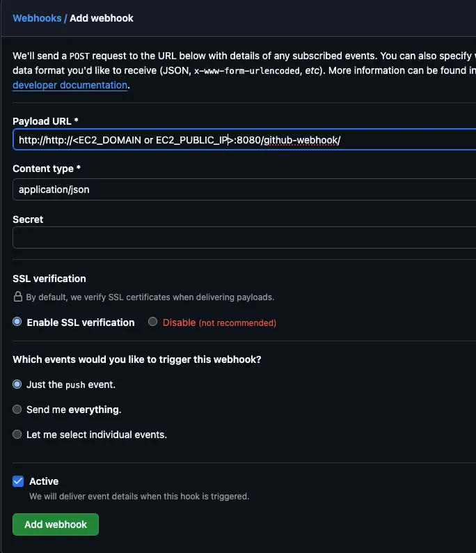 4. Github에서도 webhook 설정